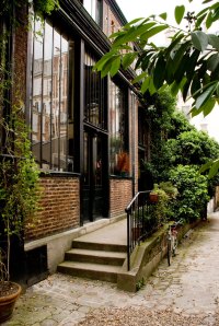 Behind the facade of many Paris apartment buildings, there exist rows of ateliers where artists and craftsmen have lived and worked for generations. Jim’s atelier, overlooking a garden path, is one of these. The party was in full swing when we arrived with guests standing in the garden and pouring out the doors. We made our way inside to find a tall, genial American seated on a stool with clipboard in hand. “Mary, Paul! Welcome! Meet Stephan and Natalie and Lisa!” We were checked off the list, pointed to the bar (outside in the garden) and introduced to at least ten other guests of various nationalities. One of Jim’s best-known characteristics is his ability to remember names. If he’s met you, he remembers you.